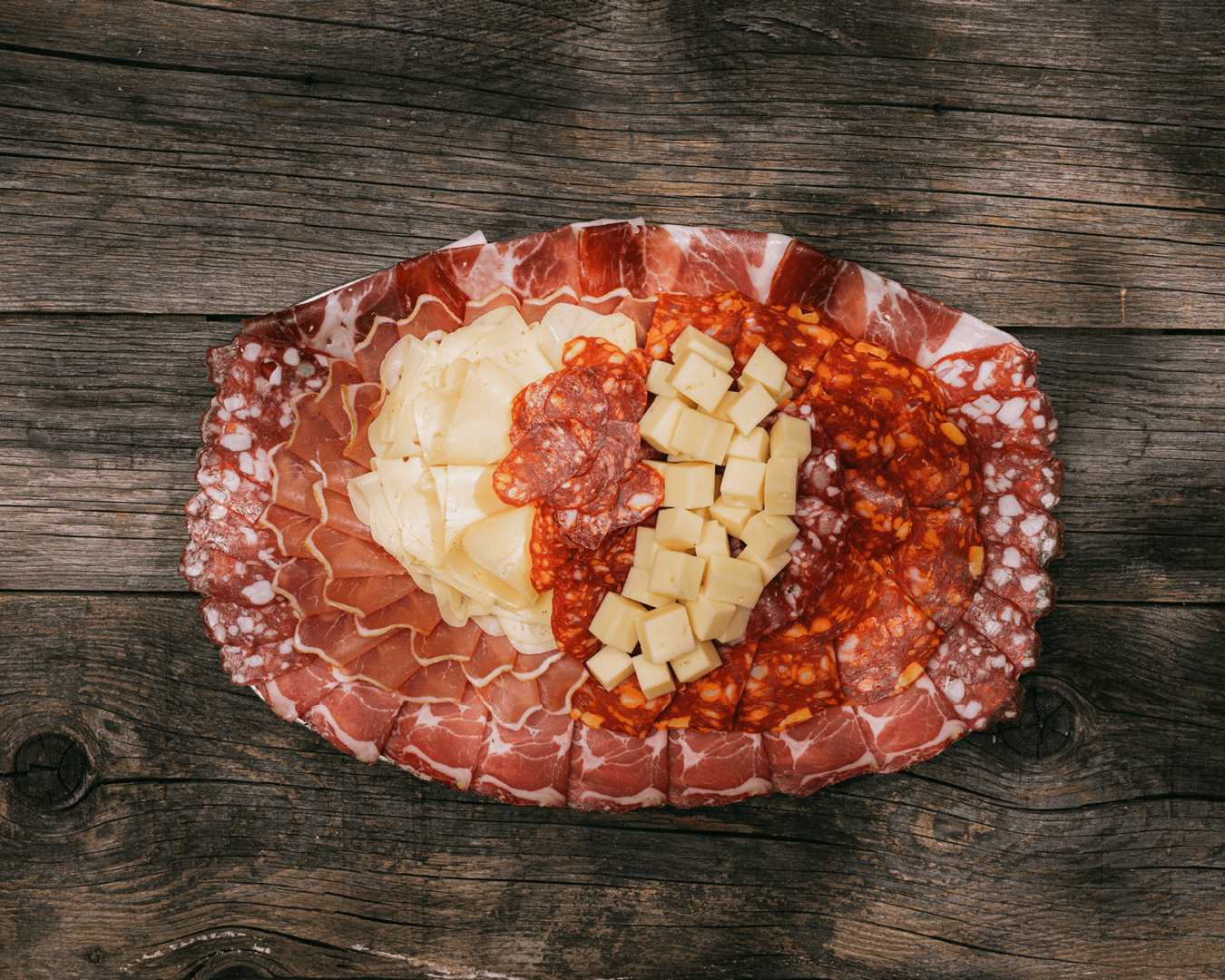 pršut - buđola - kulen - samoborska salama - baranjska kobasica - suha pečenica - 2 vrste sira