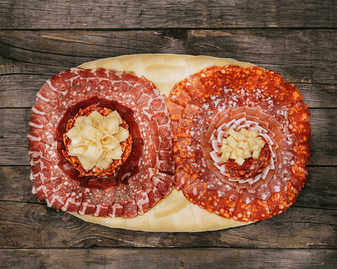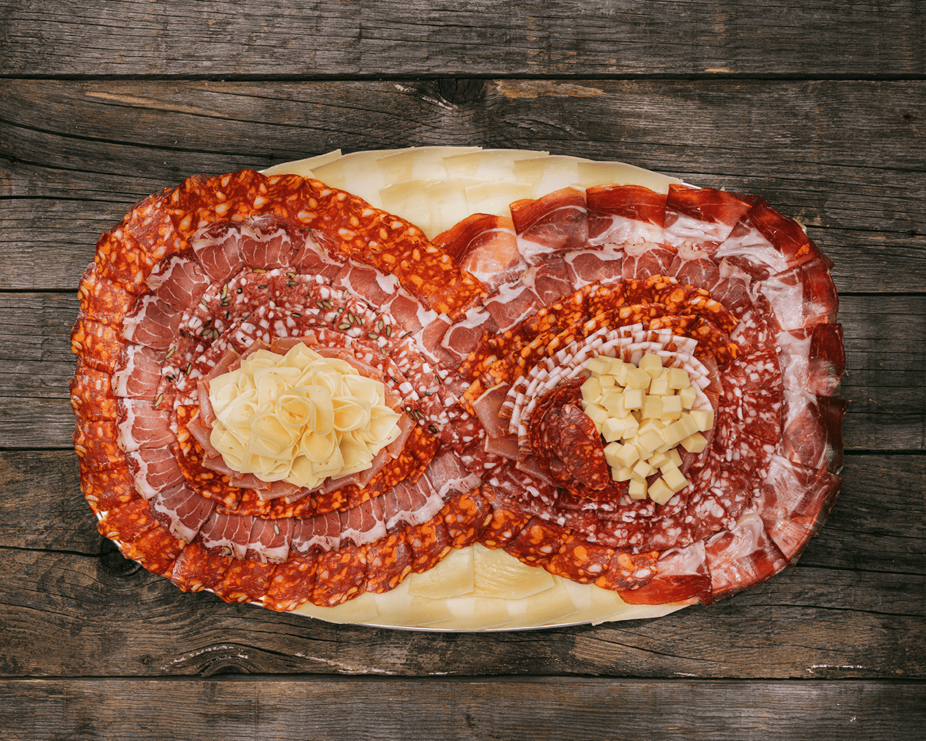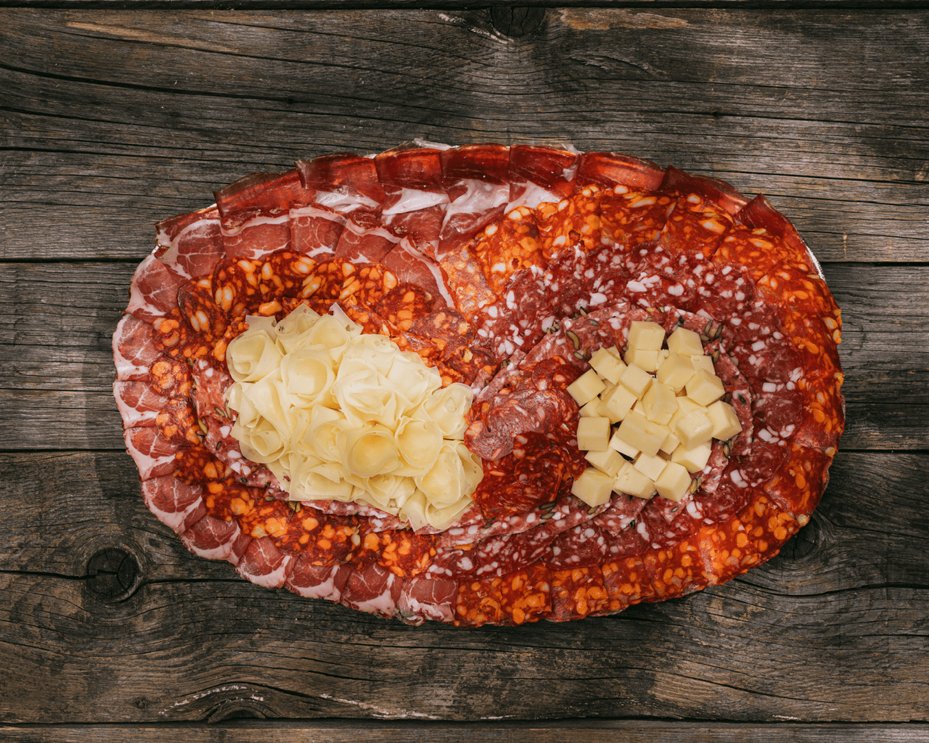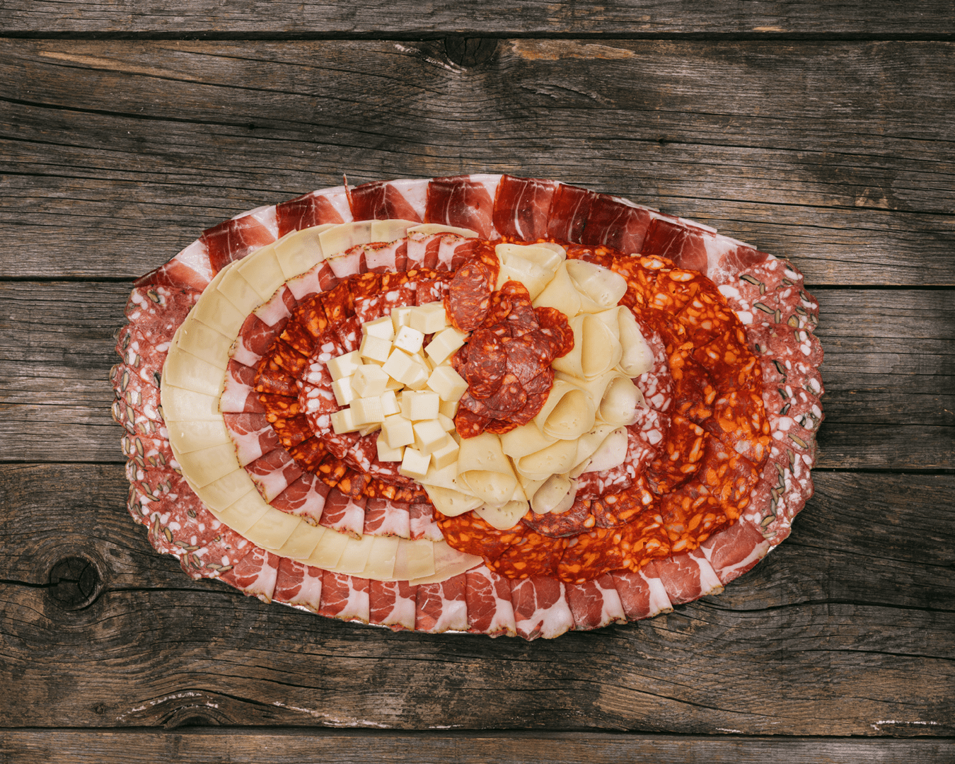 pršut - buđola - kulen - samoborska salama - samoborska s bućinim sjemenkama - kulenova seka - domaći suhi špek - suha pečenica - baranjska kobasica - 3 vrste sira